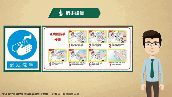 在洗手站和车间入口张贴带有“洗手”字样的标识以及简明易懂的洗手方法。对洗手流程执行的有效性可通过目视检查、涂抹等方式来验证。