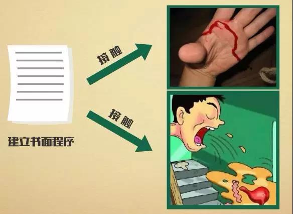 工厂应建立书面程序,明确与血液或其它体液(如呕吐物)有接触的产品或食品接触面进行处理的程序。
