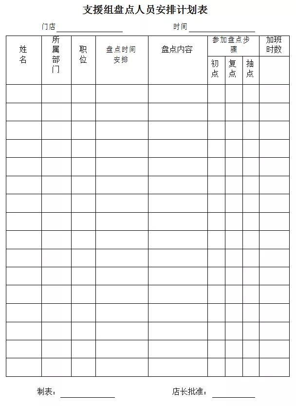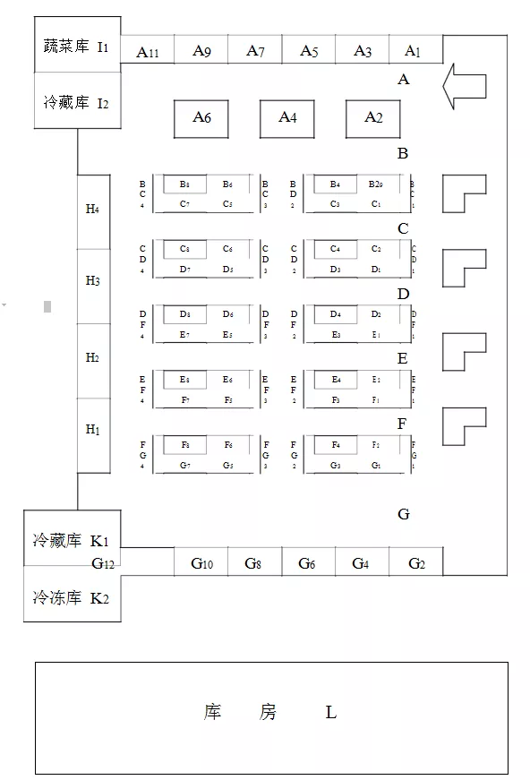 开业初的全店配置图可做盘点配置图之用。一般而言,盘点配置图上除包括卖场的冷冻柜、冷藏柜、货架、大陈列区之外,还应包括后场的仓库区、冷库等,只要是商品储存、陈列之处均要标明。