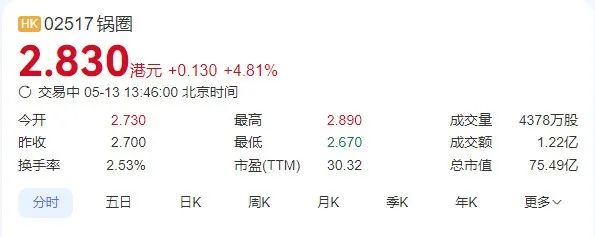 截至2025年5月13日,锅圈股价为2.830港元/股,与上市首日5.98港元的发行价相比,几乎等于腰斩,市值较巅峰时期蒸发了90多亿港元,似乎难逃上市即巅峰的命运。
