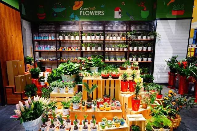 走进奥体·阳光天地广场,远远便能望见醒目的GuanPark弧形店招。还未走进这家店,鼻腔里便满是清新的鲜花的芳香,可谓闻见其貌,先闻其香了。原来超市的入口处,便是花艺区,新鲜的绿植和娇艳的鲜花,让人顿时心情大好。