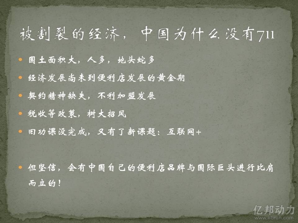 而最早起源于美国的7-11,因为其地广人稀一直没有发展起来,反而在日本做强做大,为什么中国没有7-11呢?毕震认为,中国的经济发展尚未到便利店发展的黄金期,并且便利店的房租以及人力成本过高,同时还要面对互联网+的冲击。但继续发展下去,中国也会有自己的便利店品牌。