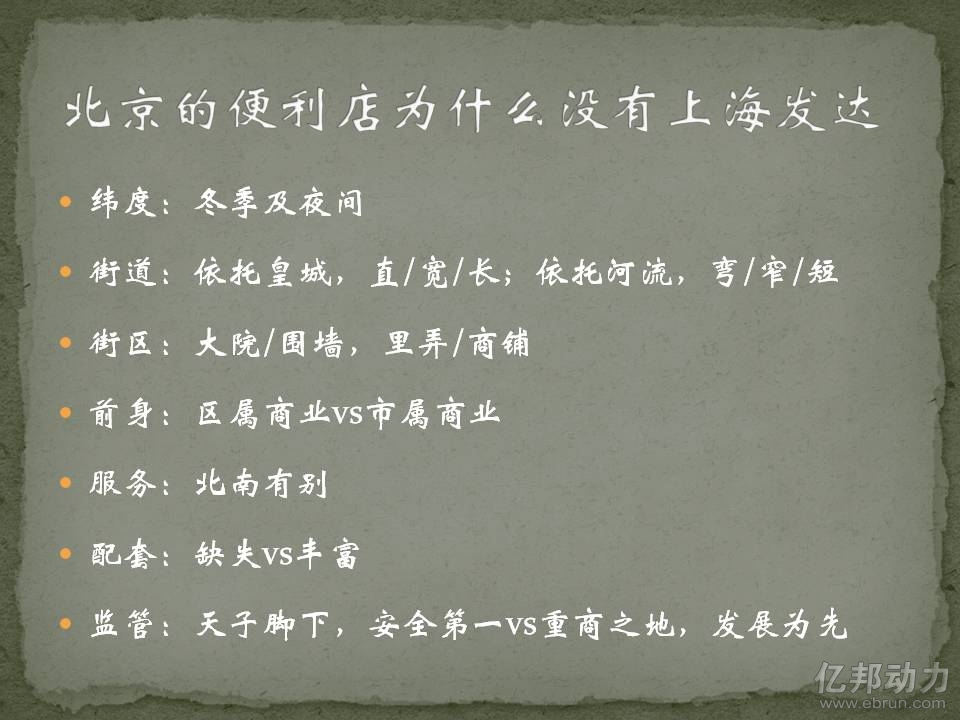 另外,上海的便利店最早都是国企,是市属企业;而北京的每个区会有自己的商业体系,区块划分,体量不够多。