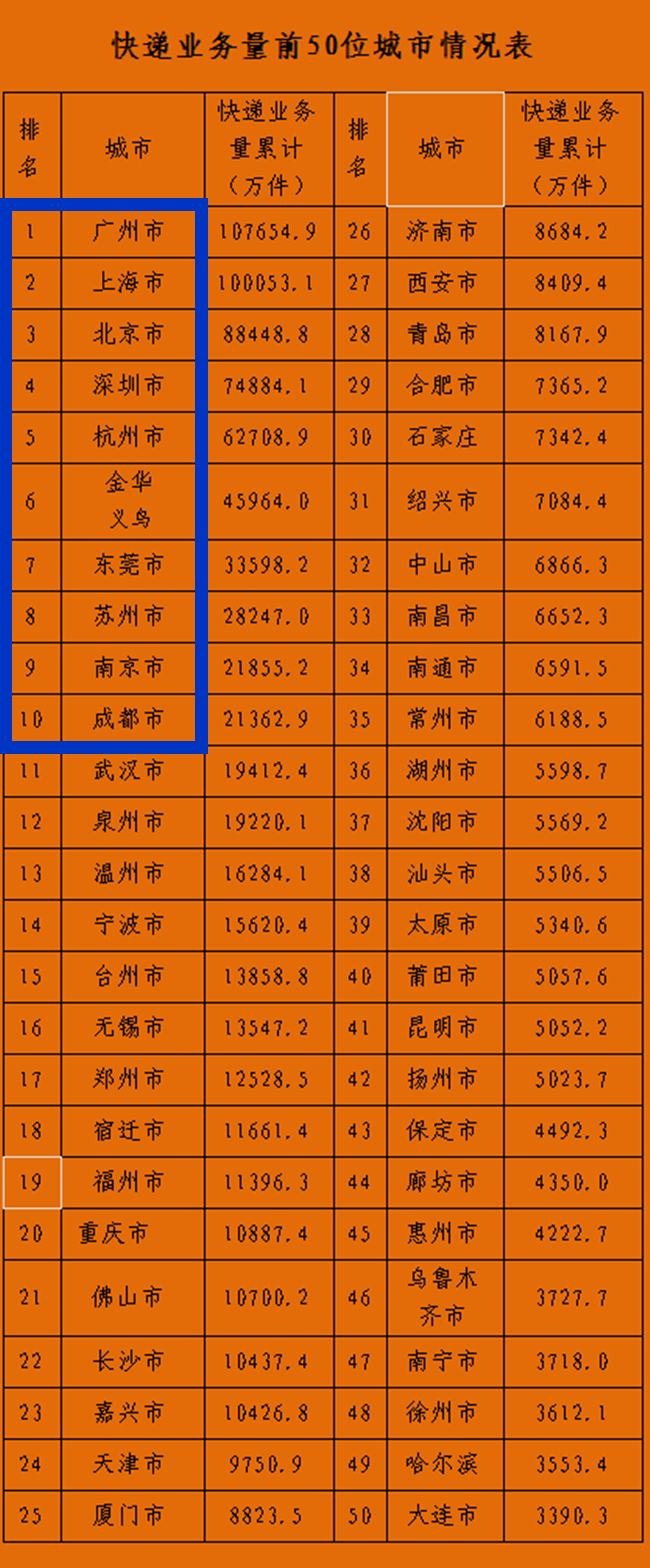 10月份,快递业务量完成12.9亿件,同比增长51.2%;业务收入完成182.8亿元,同比增长40.6%。