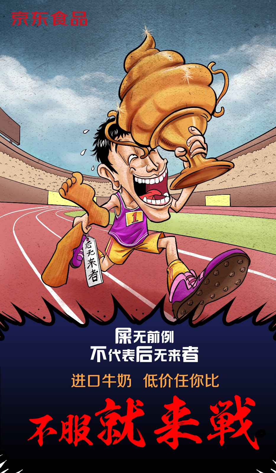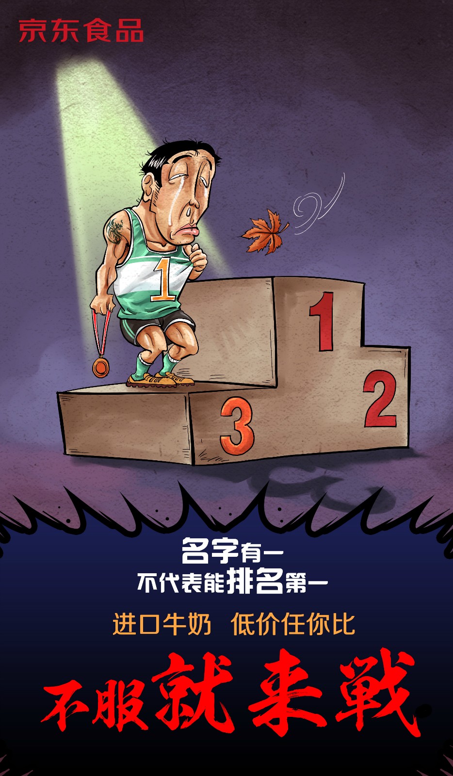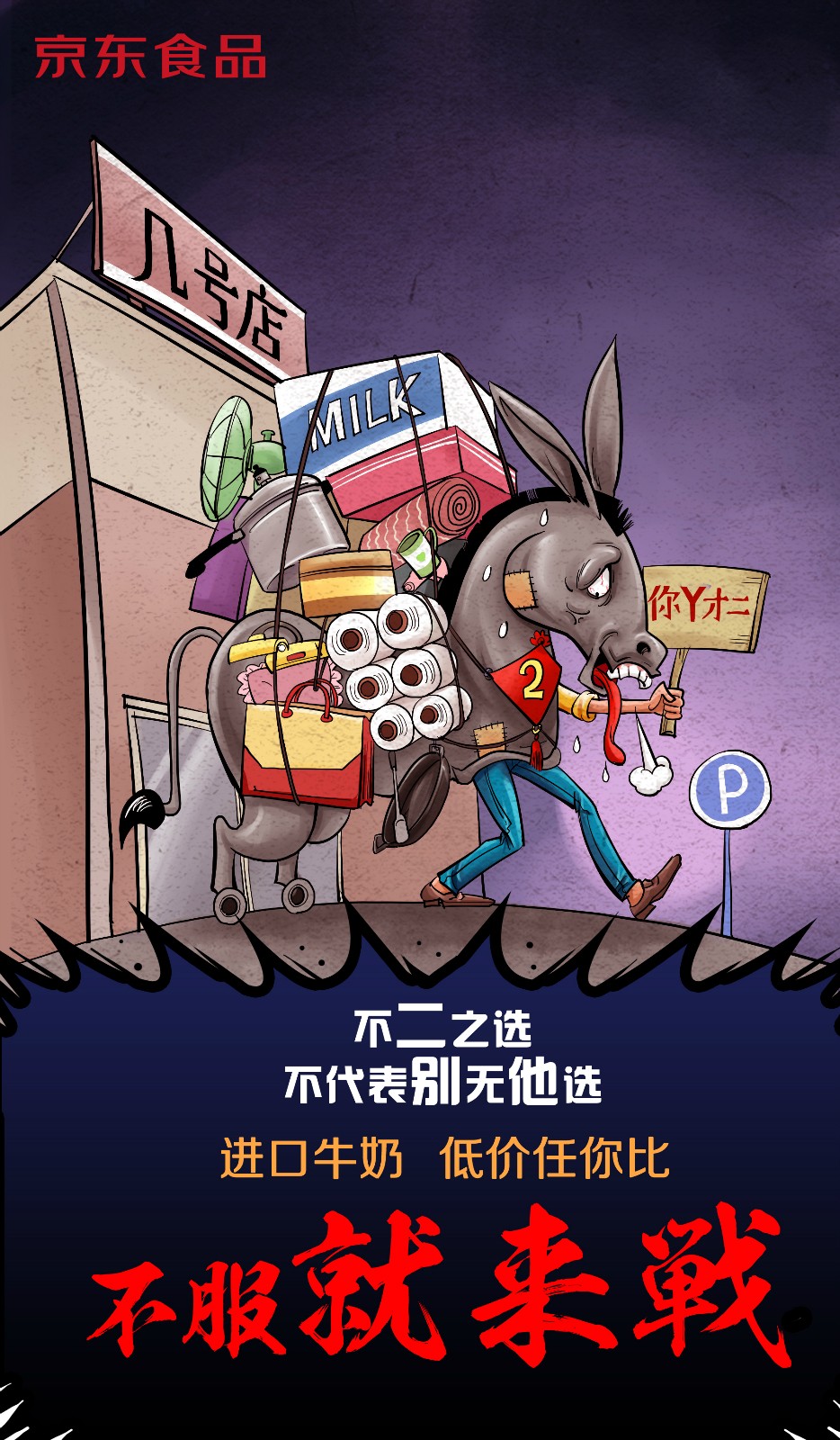 近日,京东食品曝光了一组以“不服就来战”为主题的漫画。漫画主要讲京东进口牛奶售价全网最低,有不服的随时比价。