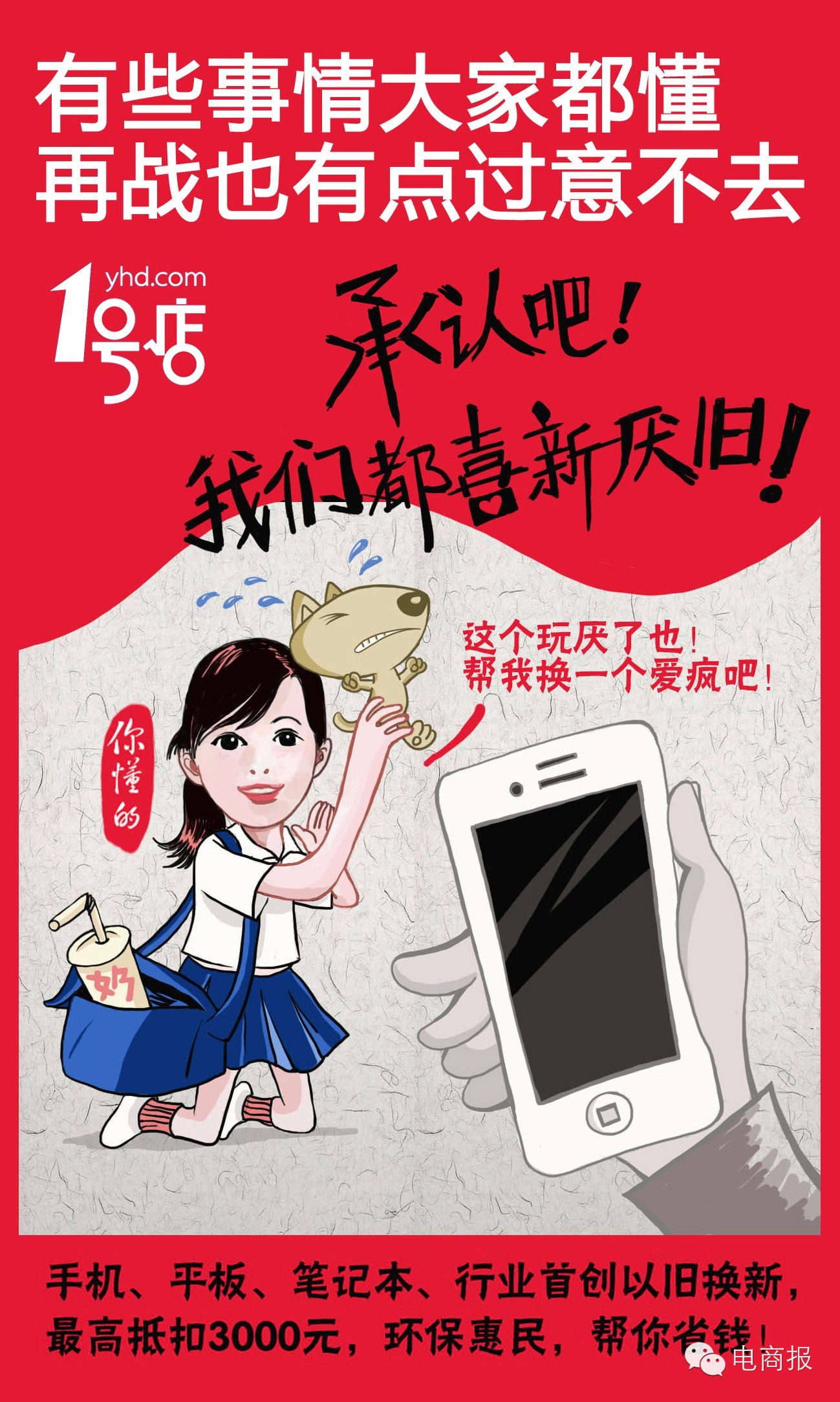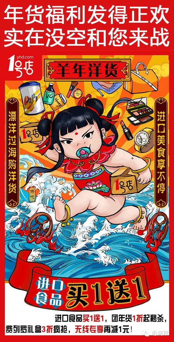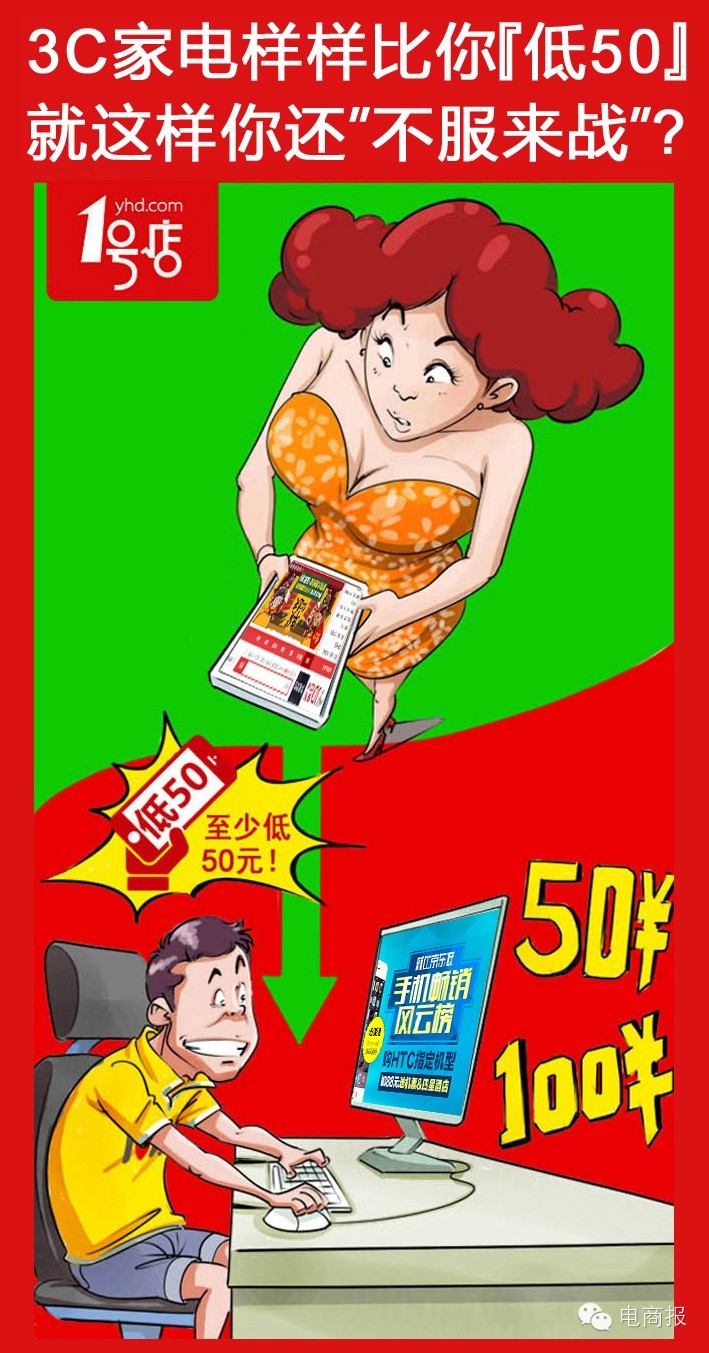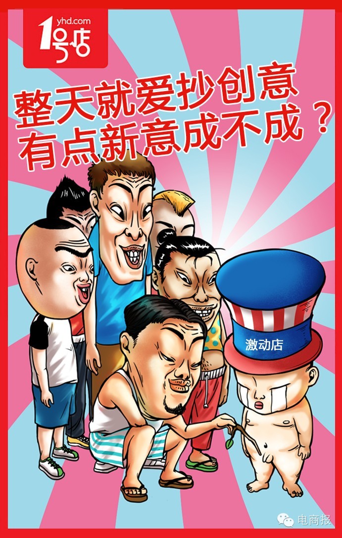 这个话题上线不到几小时,就有人用1号店之前做过的系列海报回应京东: