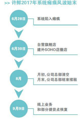 许鲜在经历两个半月的系统瘫痪、门店接连关闭的风波后,尝试重回大众视野。9月10日,许鲜在官方微博中发布消息称许鲜回来了,此前一天,许鲜的官方微信公众号也发布文章为回归预热。许鲜的微博从6月28日,即系统瘫痪后停更,8月后开始更新。