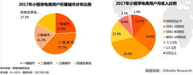 2017年小程序电商用户分布和月收入构成 来源:艾媒咨询