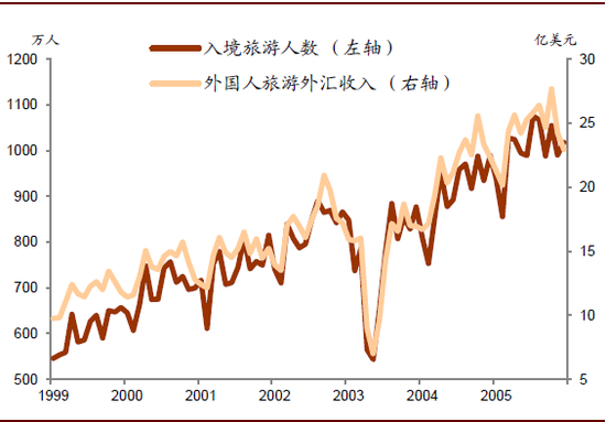 ►交通运输、住宿餐饮、旅游等行业受到较大冲击。2003年2季度,交通运输、仓储和邮政业增加值同比增长2.3%,比前后两个季度平均增速低5.4个百分点;住宿和餐饮业同比增长7.4%,比前后两个季度平均增速低6.6个百分点。2003年5月,中国内地入境旅游人数同比下降31%,旅游外汇收入同比下降59%,国内旅客运输量同比下降42%。2003年5月,社会消费品零售总额同比增速降至3.6%,显著低于全年9.1%的增速。