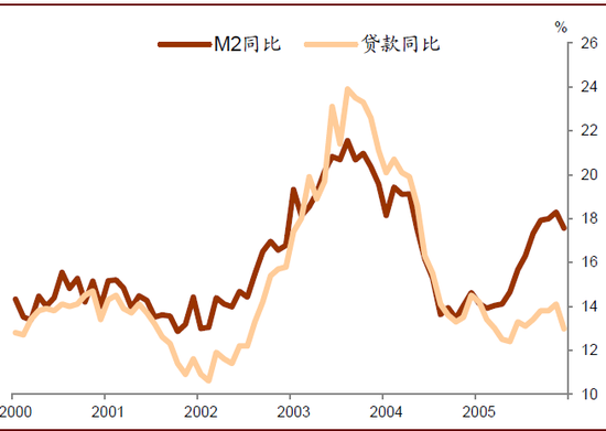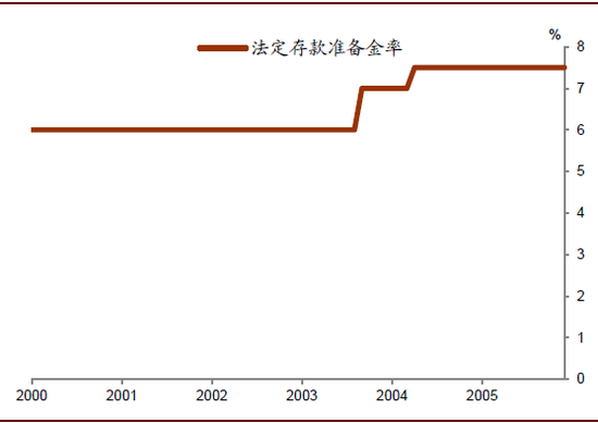 ►货币扩张保持较快速度,直到经济上升态势重新得到确认央行才提高准备金率。2003年国内货币信贷增速较快,上半年M2同比增长20.8%,贷款同比增长23.1%。2003年房地产市场出现了一定程度的过热,上半年商品房销售面积同比增长38%,销售额同比增长45%。与此同时,外汇资金持续流入。当三季度末经济过热趋势重新得到确认后,9月21日央行将准备金率由原来的6%调高至 7%。