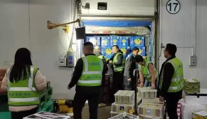 不仅如此,为保障春节期间各类民生物品的正常供应,物流的同事们加班加点卸货入库。在保证安全的前提下,将及时配送至湖南省各门店,让市民们吃到安全、放心的蔬菜、水果及肉类。