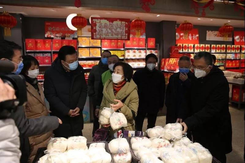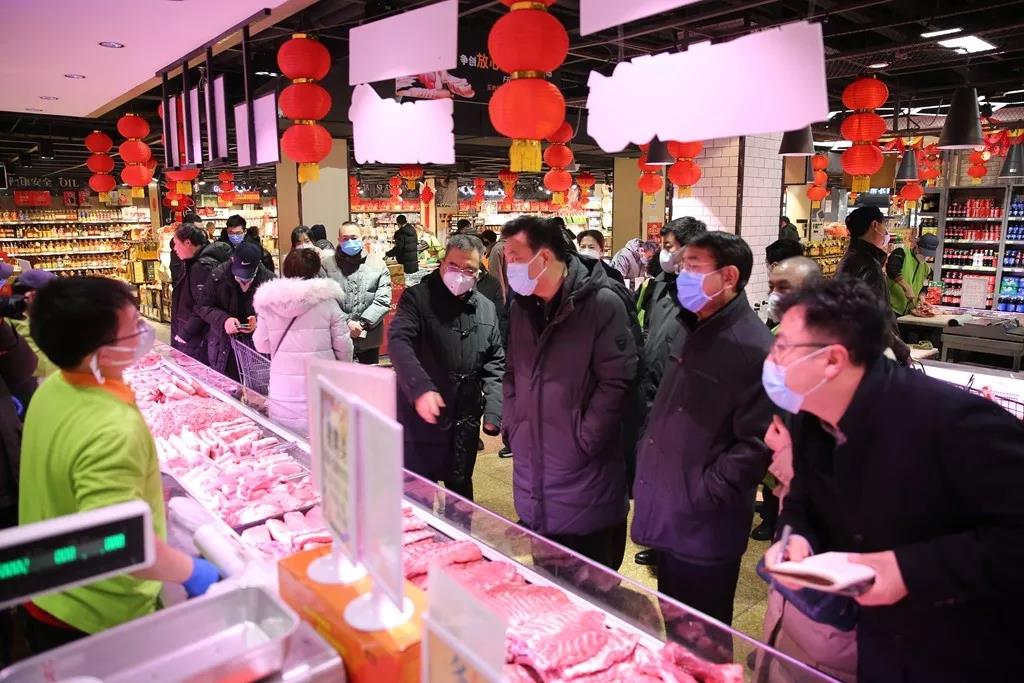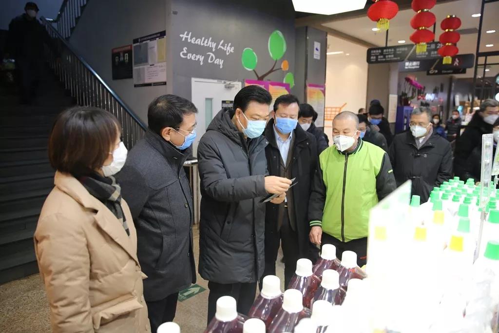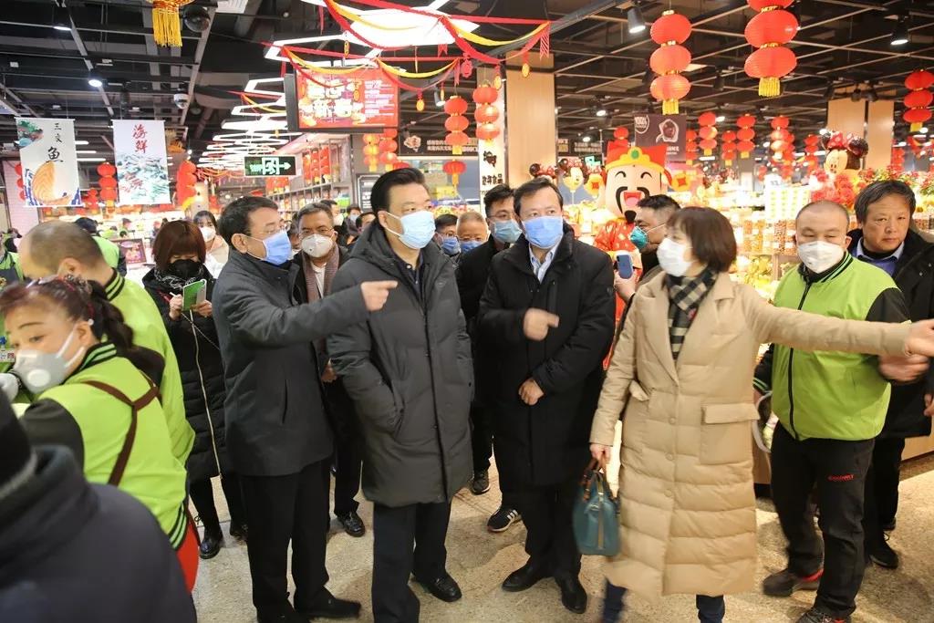 1月27日,北京市政协主席吉林、秘书长严力强一行来到超市发双榆树店,对春节期间日常用品和防控物资供应情况进行视察。海淀区委书记于军、区长曾劲、副区长张若冰、海淀置业集团总经理张建平、超市发董事长李燕川等领导陪同。超市发常务副经理赵萌、双榆树店店长刘学东作了随行介绍。