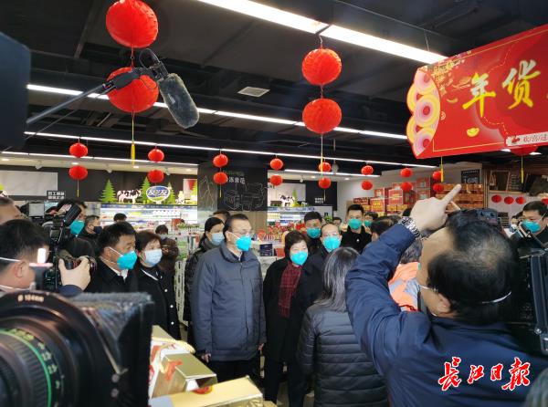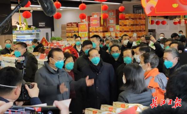 1月27日中午,李克强总理到武商量贩(武泰闸店)考察物资供应情况。