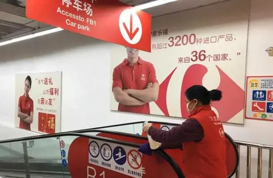 在武汉,由于疫情影响,家乐福门店每天都要对地面、自动扶梯把手、购物车、购物篮每2小时消毒一次,厕所每1小时消毒一次,员工每日测体温戴口罩上岗,并且4小时更换一次。