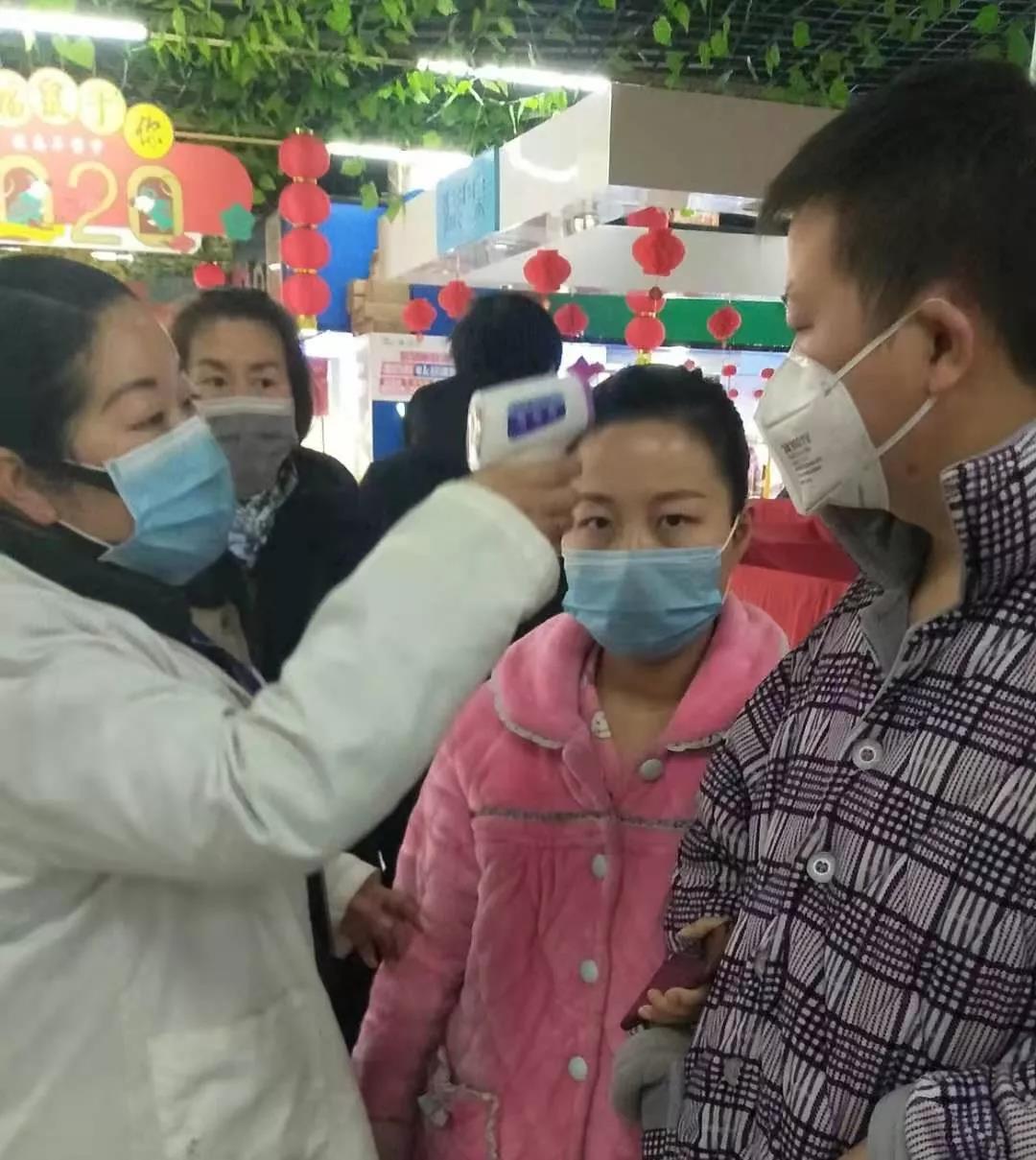 第一时间到药店购买了一个非接触式红外体温仪。要求将门店所有员工花名册打印出来,每天测量温度并登记;另外安排门店人事对所有员工培训防控防护常识;安排防损在卖场入口对进店顾客要求戴口罩、测量体温才能进入卖场。