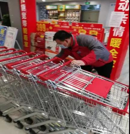 自己每隔3-4小时进行卖场、卫生间、垃圾桶、购物车、购物篮消毒工作。公司派发的口罩,每隔4小时给员工一一更换,换下来的口罩统一销毁,让员工上班期间感受到公司的关爱,也让顾客感觉进入超市的安全性。