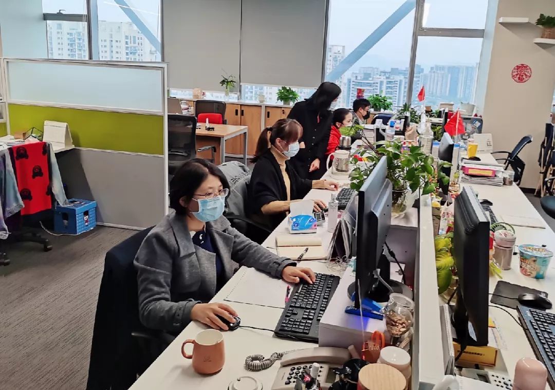 除了在一线现场可以看到的身影外,另一群与时间赛跑的人也紧张地忙碌起来了,天虹全国近350名财务工作人员早早就启动了远程办公。