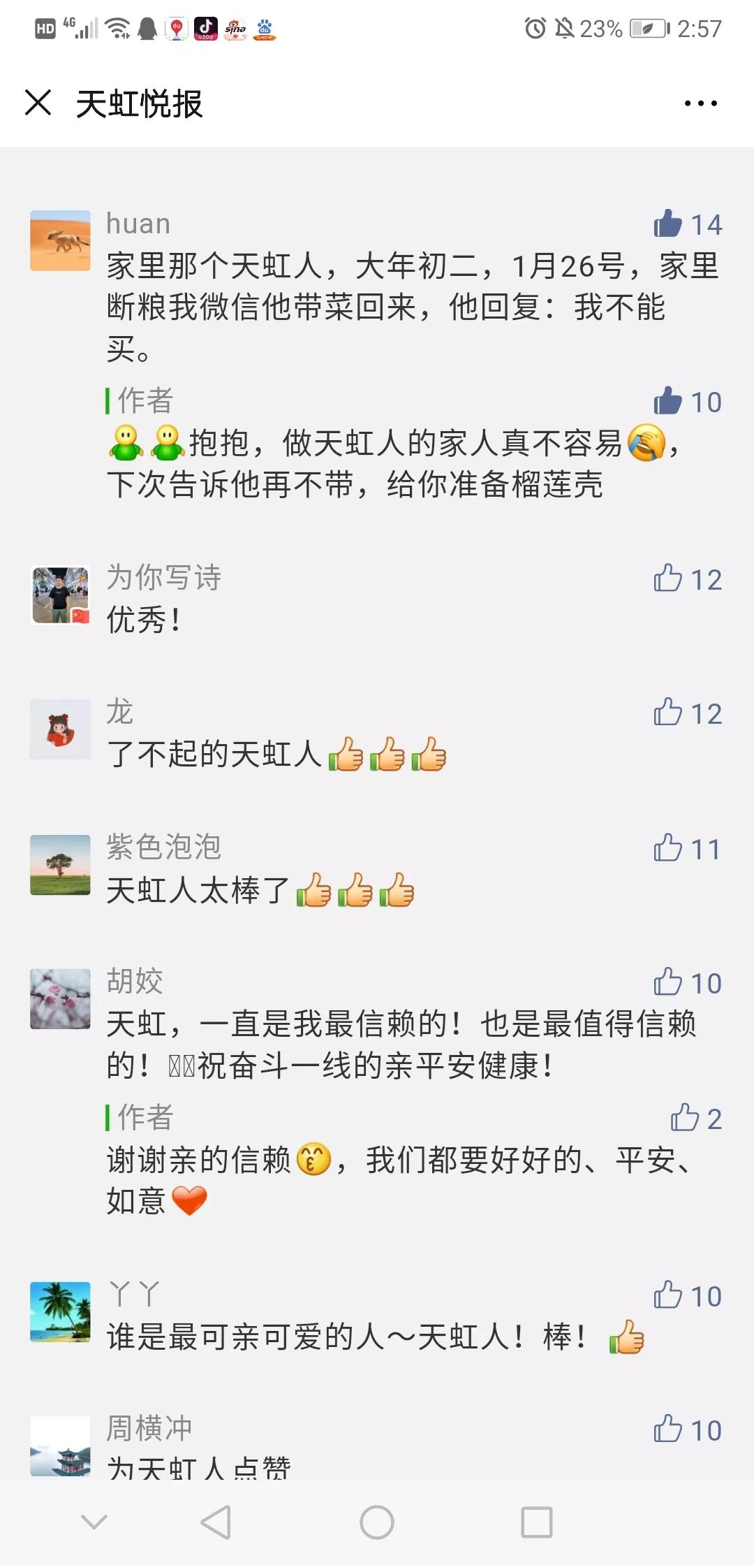 “ 我们作为供应商深受感动,在很多经销商要到2月中旬才接单供货的情况下,我们已积极与街道安监书面沟通后,确保2月1日开始给天虹供货,大家一起努力!我们心里都有一杆秤。向战斗在本次新冠肺炎疫情幕后的零售商英雄天虹商场致敬!”