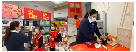 春节的上海依旧寒冷。清晨5点,胡蓓瑛就起床开始了忙碌的一天。为年迈的父母准备好早餐后,匆匆奔赴工作岗位。开店前的例会上,除了照常的分配工作,今年特别的是先会通报疫情的相关官方信息,就员工自身防护、收银线清洁工作、保证服务质量等方面与团队沟通并严格执行。上岗前,她一遍遍提醒员工带上口罩,并亲自为每一个收银员上岗前测量其体温,确保他们做好自身防疫工作,并给予鼓励来舒缓、排解收银员的紧张情绪。此外,收银线的消毒工作也是胡蓓瑛的一大工作重点,无论工作如何繁忙,她都会亲自带队安排人员对收银线消毒,特别是机台和传送带区域。她解释说,“顾客和员工的健康与安全始终是我们关心的头等大事,容不得半点懈怠。我们在做好自身防护的同时,也要保证春节期间门店的卫生状况,保障市民有一个安心的购物环境。”