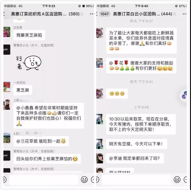 这段时间,美惠订菜的小伙伴们每天至少要接待100+顾客线上下单到店取菜,为给顾客最好的购物体验,美惠团队分工协作,一部分人教顾客使用手机,一部分人为顾客打包商品,有些顾客因为严控问题在高层没法下楼,美惠团队的小伙伴们就抽时间一趟一趟地为顾客送上门去,一旦新鲜商品到店,他们第一时间通知顾客取货,在这个特殊的节日里,美惠被顾客认可,价值被一点一点地体现......