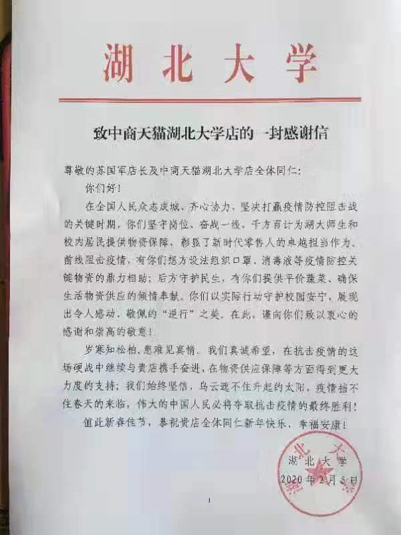 中商超市人的真心服务得到了各大高校教师、家属及校领导的高度赞扬,中商超市湖北大学店今天收到了来自湖北大学校方的一封感谢信,信中对我们工作人员在疫情时期坚守岗位,贴心服务表达了高度的赞赏,中商超市做的不仅仅是一个小超市的应该做的事,更多的是尽到了个大型企业的社会责任,在物资紧俏时,千方百计的组织消杀商品到校园,尽量满足校内所有师生家属的需求,在政府倡议少出门,不出门的时候,他们却逆行保供,还精心设计非常时期的售卖方式,极大限度的减少了人群聚焦,减少了购买时间,没有一个师生及家属不表扬叫好的,中商超市人就是我们校区的大管家,有了中商超市,我们生活得到了保障,在非常时期里,也能舒心的度过,相信在中商超市的陪伴下,疫情很快会过去,中商超市校园店也会越来越好。