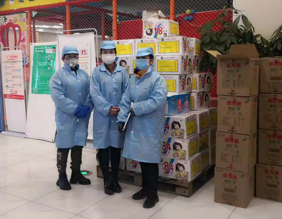 疫情当前,乌兰图雅亲自紧盯一线员工疫情期间的安全工作。不仅为一线兄弟姐妹和门店配备了防护服、口罩、消毒液,还给一直坚守在岗位上的兄弟姐妹特殊补贴每人300元。为保障员工的生活质量与营养 ,开元爱心超市为全体员工发放鸡蛋、食用油、消毒液等物品,竭力保障一线员工的身体健康。