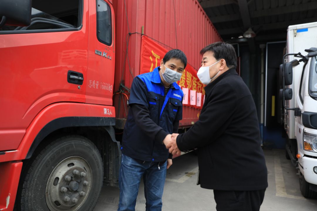 江苏新合作常客隆连锁超市有限公司车队长严军:这是我们发往武汉的第一辆车,还有两辆22号陆续发往武汉。我们将日夜兼程,争取让江苏援鄂的一线医护人员能早日吃上我们常熟的家乡菜,武汉加油!