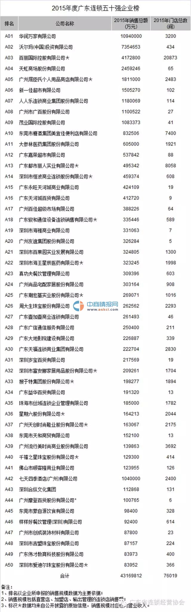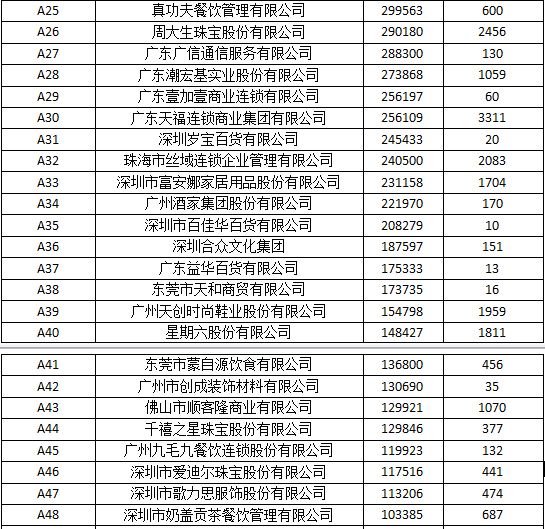 广东连锁50强榜单: