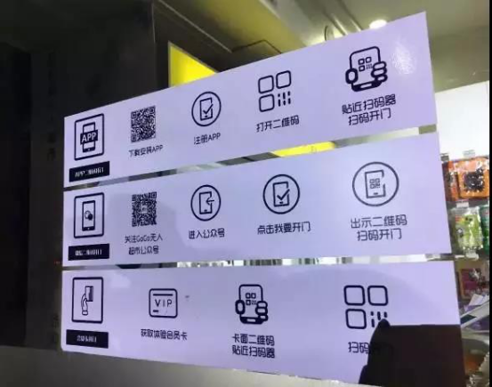 该无人超市的自助购物途径有三种:下载APP、关注微信公众号以及会员卡,最终都能让你拥有一个二维码,进门和结算出门的时候,都需要扫码。