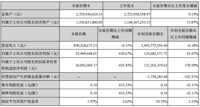 报告显示,2019年第三季度武汉中商营业收入为890528673.23元,比上年同期减少0.11%;归属于上市公司股东的净利润为25909648.01元,比上年同期增长439.67%;归属于上市公司股东的扣除非经常性损益的净利润为26002469.17元,比上年同期增长425.45%。