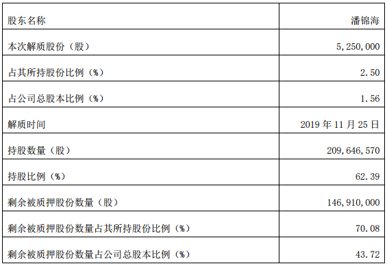 汇嘉时代方面表示,潘锦海先生未来半年内到期的累计股份质押数量为 116,910,000 股,占其持股总数的 55.77%,融资金额共计 31,691.69 万元。潘锦海先生资信状况良好,具备相应的资金偿还能力,还款资金来源为其自有及自筹资金。