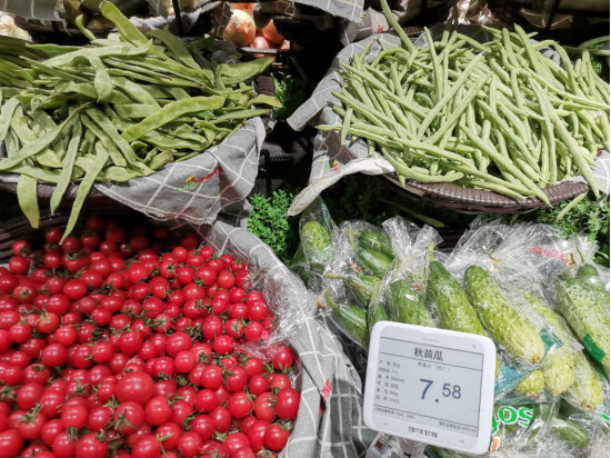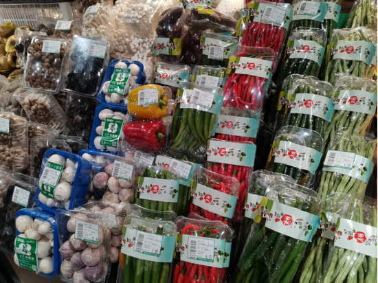 以其礼贤店为例,店内商品多是集团旗下物流公司统一配送过来,一般是下午下订单,隔一天凌晨3点到货,个别蔬菜会在后场进行包膜加工,其余袋装蔬果直接整理上架。与其他市区门店不同,周边客群虽慢慢接受包装好的商品,但个别蔬果礼贤店还是以散称形式存在如豆角、小西红柿等。