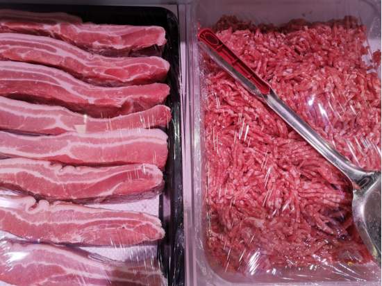 礼贤店属于A类店,入口即是蔬果,紧接着就是水产与肉类,妥妥的生鲜环绕型布局。经过两年时间的培育与经营,礼贤店内蔬果一天能卖12000至13000元,肉类日均销售额为近6000元,水产4000元左右,分早晚两个高峰期,早高峰主要消费群体为附近小区住户,晚高峰则主要是下班后的工地人员与机场工作者。