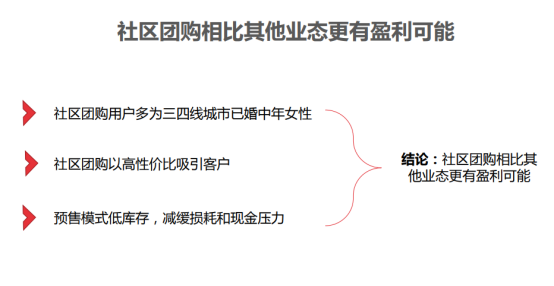 “三较优势”分别对应的是消费需求、运营及投资,这使得社区团购的盈利模式在理论上清晰,同时实践中能得以验证。