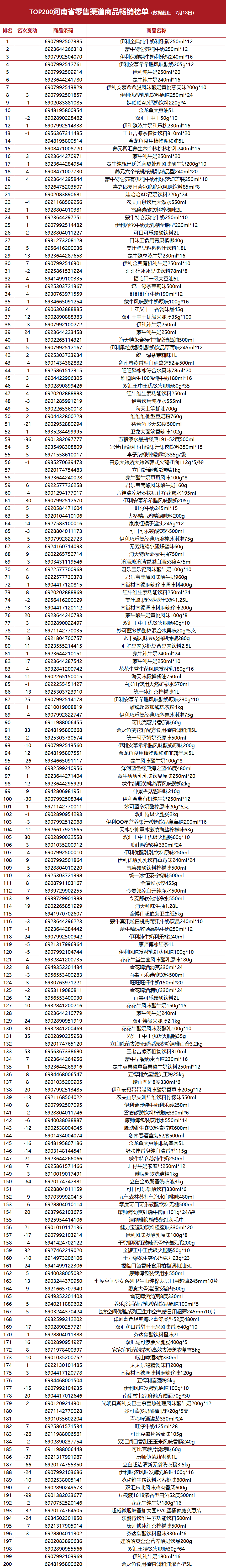 “TOP200河南省零售渠道商品畅销榜单”发布(7月11日版)
