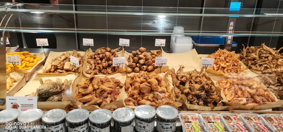 熟食类别自营,卤制品几个主打系列有红烧肉,卤鸡爪,鸭血,虾尾,麻辣羊蹄;炸制品有小鱼类,炸河虾和丸子系列,还有炸豆腐和酥肉鸡块,适合河南人的饮食喜好;凉拌菜做得精致,季节性蒸菜、花生、毛豆等,以素菜为主。
