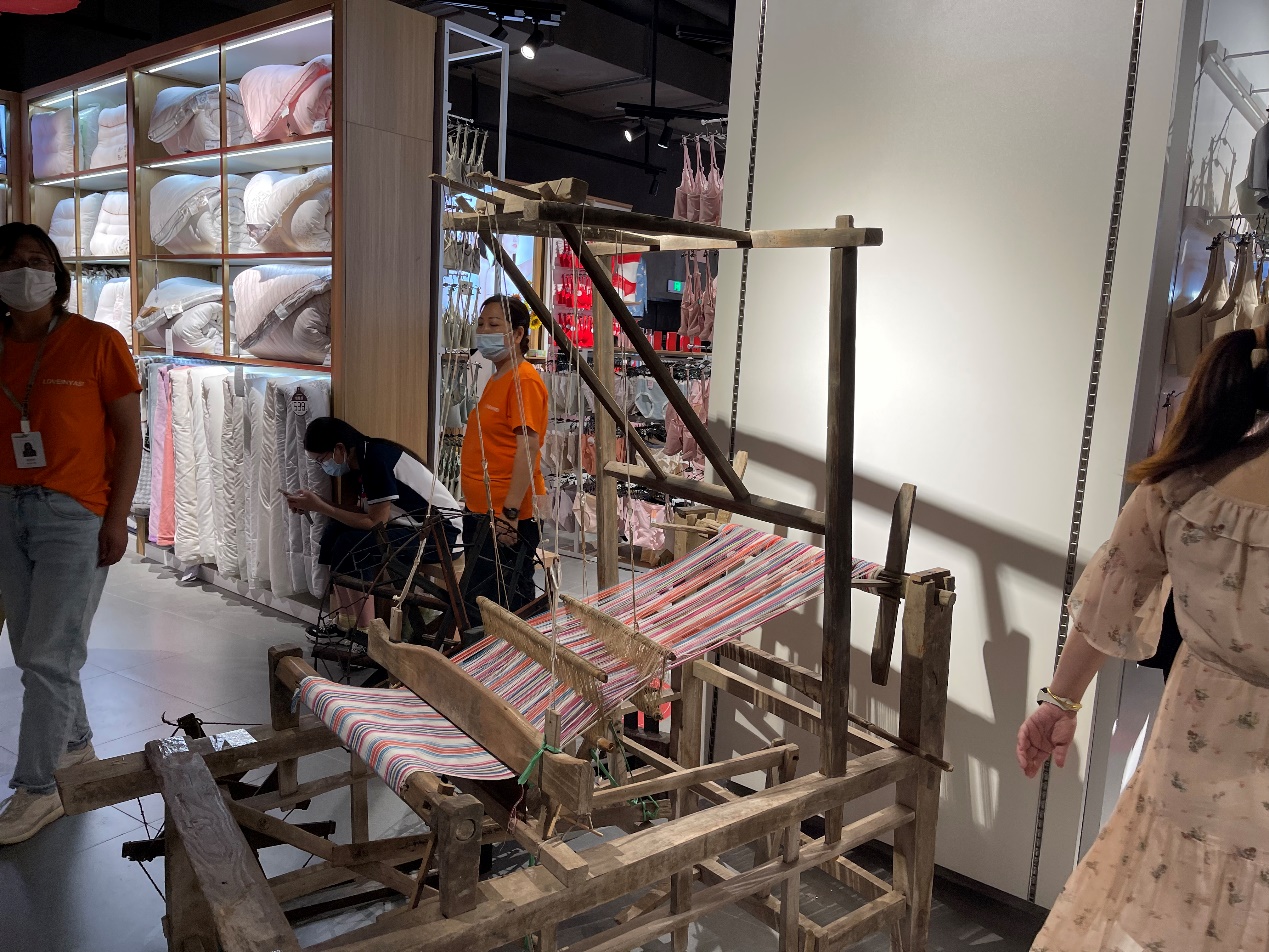 美只有表达出销售力,才能成为卖场点睛之笔。这样的点睛之笔,在新开业的雅斯宜昌吾悦广场店比比皆是,比如放在家居区的这台老式织布机,它吸住你的目光,让你停下脚步,当你围着它转转的同时,可能就会看中靠近它的某几样商品;比如这个老式篮子,当你研究它的古典美时,和它相映成趣的商品,很可能就会刺激你的购物欲。