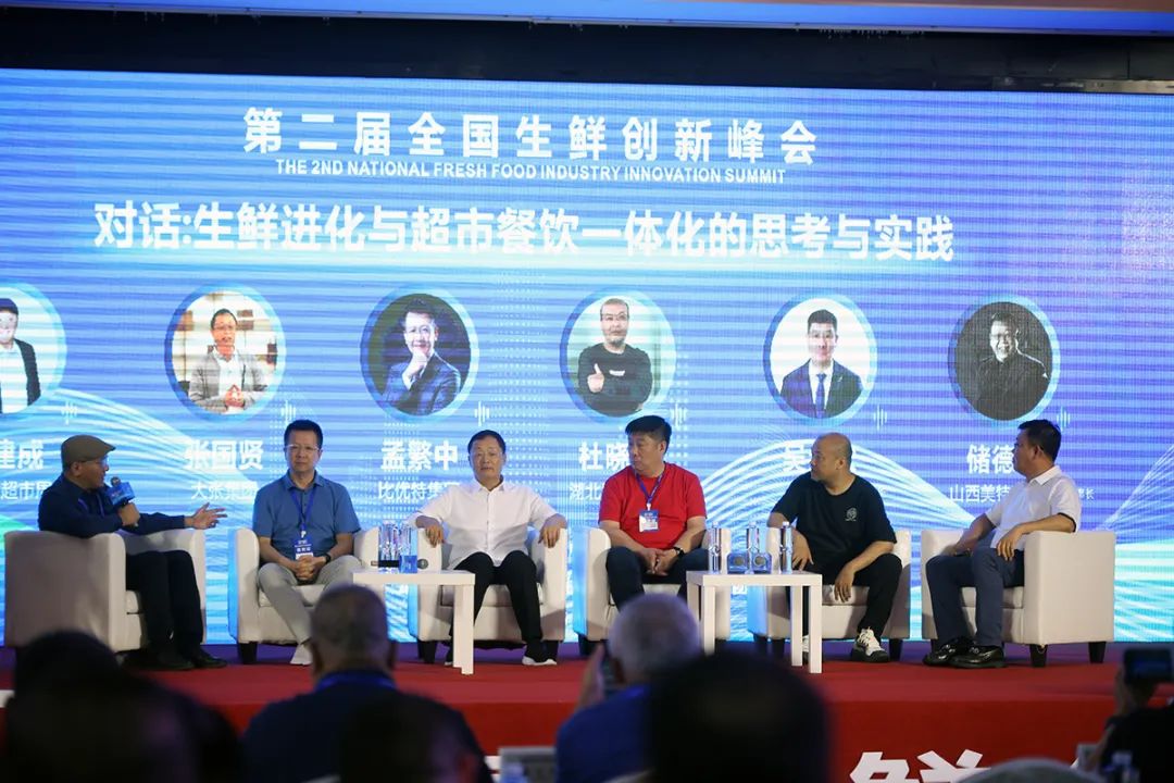 7月12日,龙商网超市周刊主办、湖北雅斯集团协办,在宜昌均瑶国际酒店举办的第二届全国生鲜创新峰会上,龙商网超市周刊总编辑高建成与大张集团董事长张国贤、比优特集团董事长孟繁中、湖北雅斯集团董事长杜晓宜、蚂蚁商联董事长吴金宏、山西美特好董事长储德群,围绕“生鲜进化与超市餐饮一体化的思考与实践”,展开了一场务实、深入探讨。