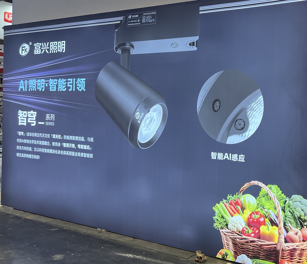 在2025年中国零售博览会广东富兴照明展区,人头攒动,现场富兴照明CEO唐京飘,为大家展示了Al照明的技术原理,将不同的商品如生鲜区的蔬菜、水果、面包、熟食、水产、鲜肉,通过AI照明的数据模型AI智能识别原理。将生鲜区的各个商品通过AI自动识别来调整他的商品光色!这背后彰显照明Al技术原理!通过Al灯光根据照射物的不同,自动呈现出与之匹配的色调。