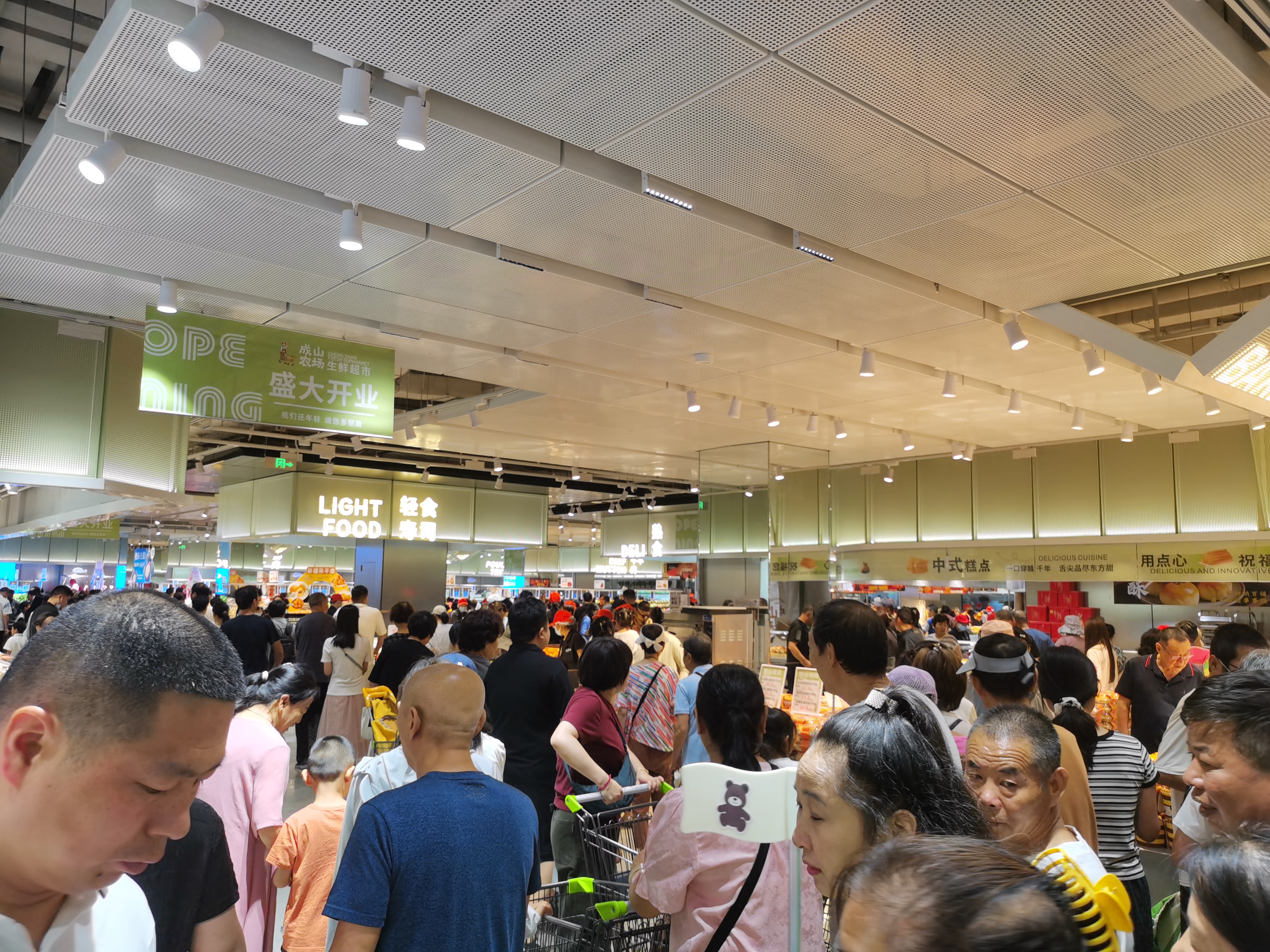 25日试营业因客流过多而延长营业时间,以及正式开业当天爆满的人流,一方面验证了成山农场强化生鲜品类经营卖场模式的成功,另一方面也足以说明其发展8年多时间来,在团队建设和商品组织方面的打磨使其具备了驾驭商场店的能力。